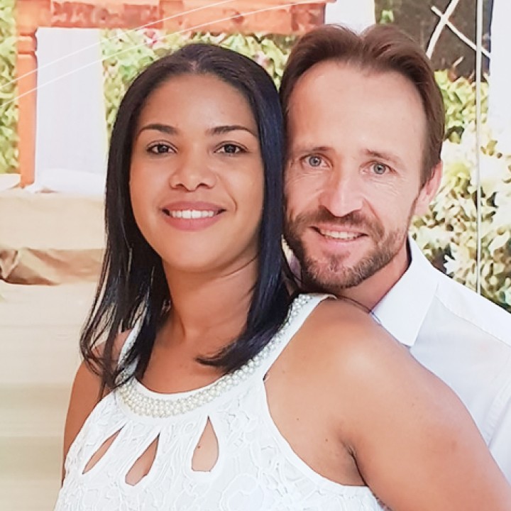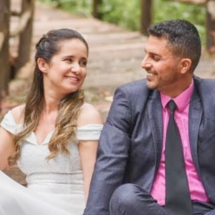 Conversamos online por algumas semanas e posteriormente nos encontramos. Namoramos por oito meses até que a pedi em casamento. Casamos em janeiro de 2019 e estamos muito felizes.