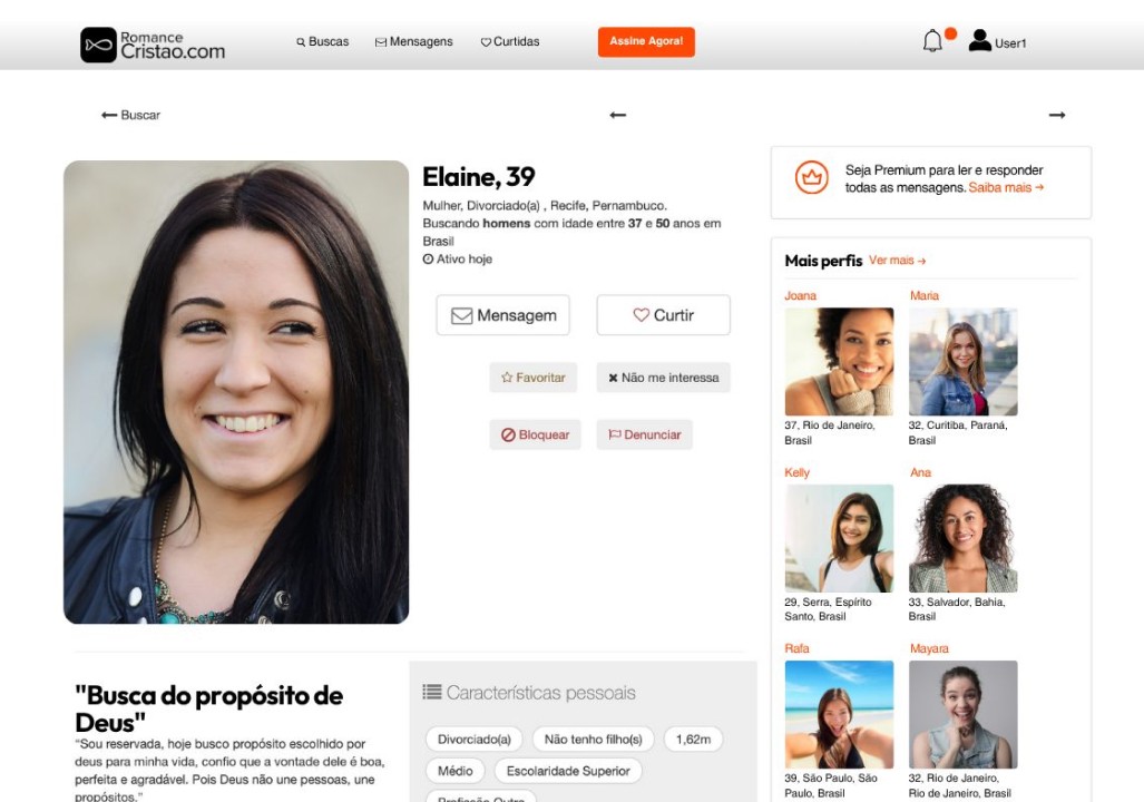 Perfis completos, com foco em fé, propósito e objetivos reais.